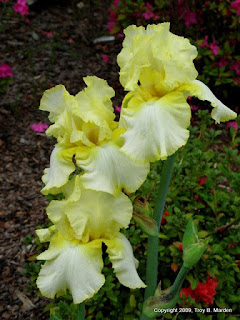 Most of these re-bloomers, at least the ones that are readily available, are the typical tall bearded types. Being sort of a bearded iris virgin, I’m sure that there are others, too, but the tall beardeds are the ones I’m most familiar with so I’m sticking with those for now. Probably the most famous of all of the re-bloomers is the stunning white ‘Immortality’. Now, you know I can barely stand white flowers, so for me to use the terms “white” and “stunning” in the same sentence, let alone side by side in a description, means that this plant must be truly special, and it is if for no other reason that it is one of the most consistent repeaters of any bearded iris, usually offering a show that is almost as impressive in the autumn as it is in the spring.